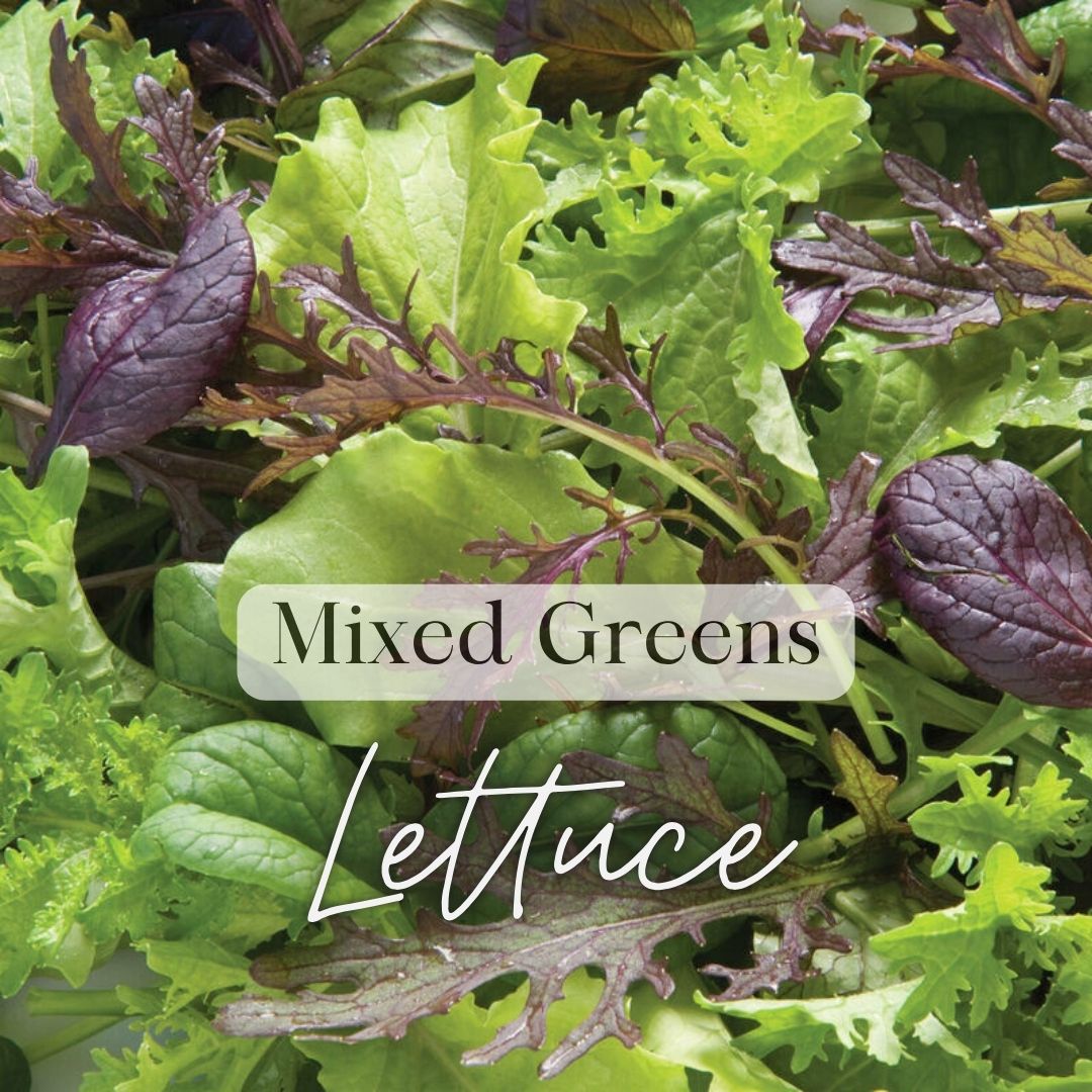 - Mixed Greens – A colorful mix of lettuces & arugula for salads and garnishes