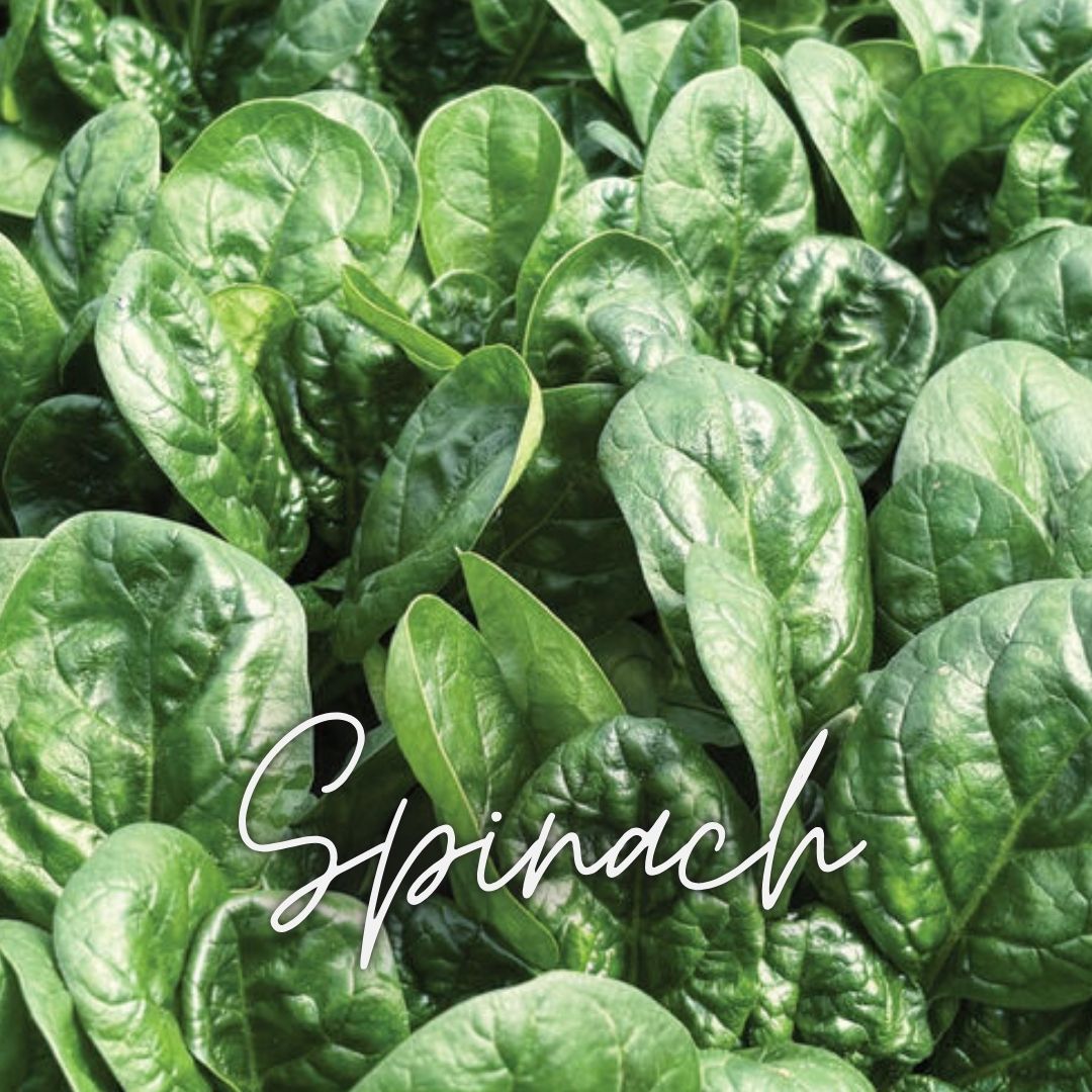- Spinach – Tender, flavorful, and packed with nutrients